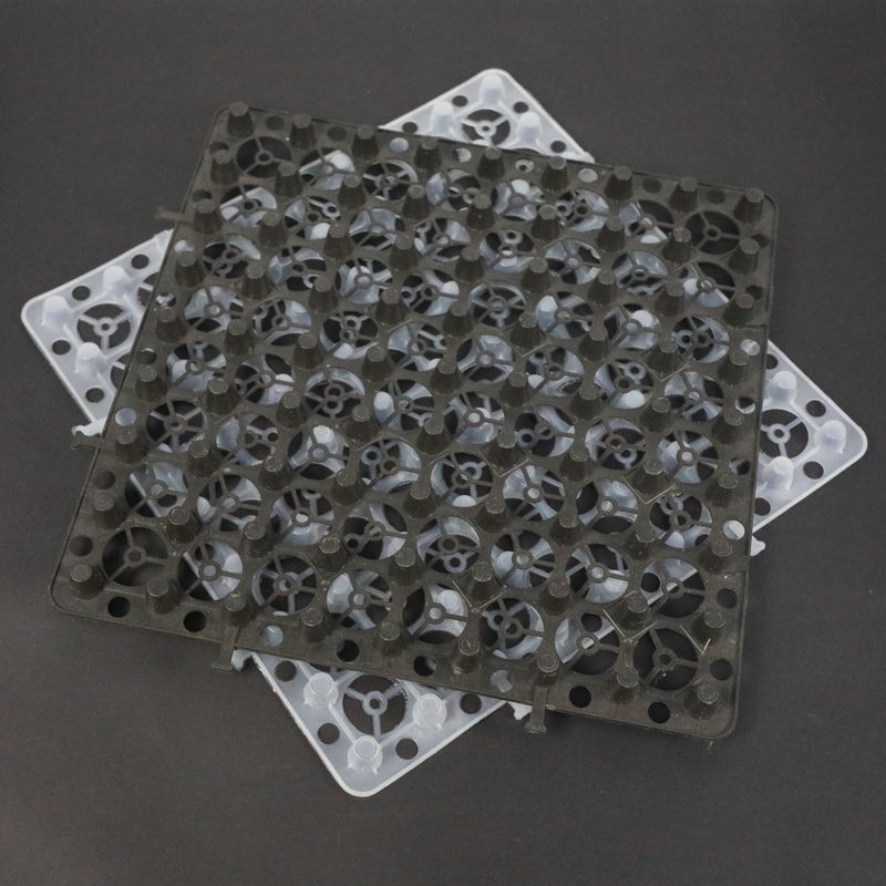 Plastikowe płyty do przechowywania i drenażu są wykonane z HDPE (polietylenu o dużej gęstości), przy użyciu wysokiego ciśnienia do wtryskiwania tworzywa sztucznego w celu utworzenia skorupy w kształcie dziury, z przestrzenią stereo i poziomem wsparcia;w górnej części skorupy, pokrywając włókniną jako poziom filtrowania do przesiąkania wody, magazynowania wody i odprowadzania wody.